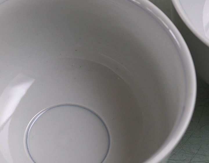 少し青みがかった柔和で温かみのある肌合いに、スッと引かれた青の線がアクセントになった「丼鉢 薫」。