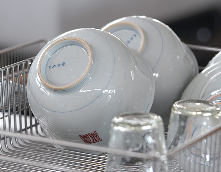 艶やかな釉薬に時折見える小さな黒点、呉須の青藍の濃淡。形や重さには個体差があり、ひとつとして同じものはありません。