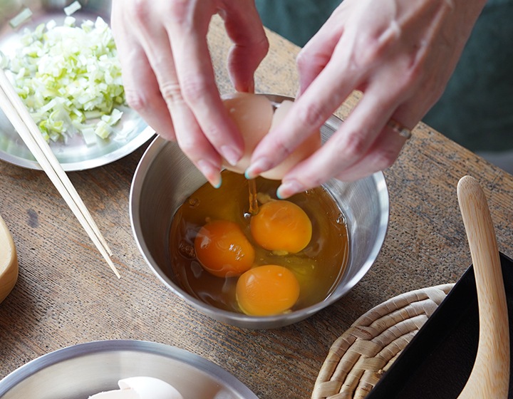 ボウルがぐらつかず、軽く手を添えるだけでもしっかりと混ぜることができるので、卵を溶いたり、粉ものや和え物、普段の料理作りやお菓子作りなど様々なシーンで活躍します。