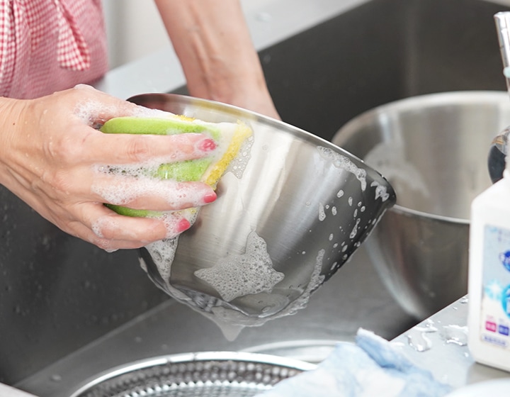 お好み焼き作り ツルツルと光沢のあるステンレスボウルは、使い始めは綺麗だったのにいつの間にかキズや汚れが目立ってきたり、薄くて軽いボウルは凹みができてしまったりと次第に残念な姿に・・・。