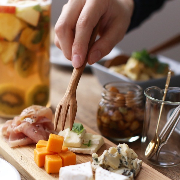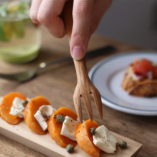 小ぶりなサイズで、ケーキフォークやフルーツフォークとしても大活躍。木製のフォークはどんな食器にも合わせやすく、お料理を引き立ててくれます。