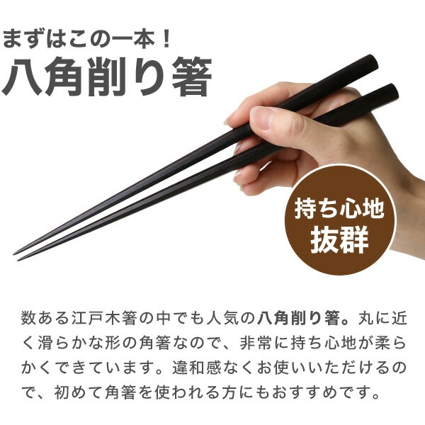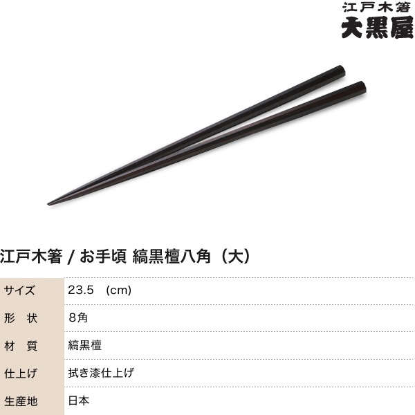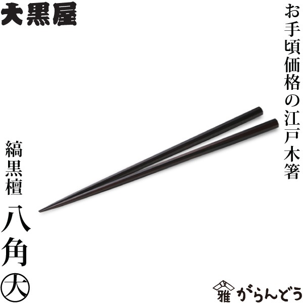 大黒屋 / お手頃価格の縞黒檀 八角 大 サイズ 23.5cm 重さ 約22g 形状 八角 材質 縞黒檀 生産 Made in Japan ※サイズ、重さには個体差があります 大黒屋の江戸木箸