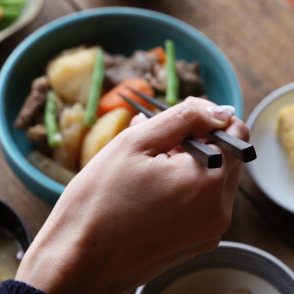 - 箸を持つ三本の指が五角面にのるので、安定感があります。男性や手が厚い方におすすめ。