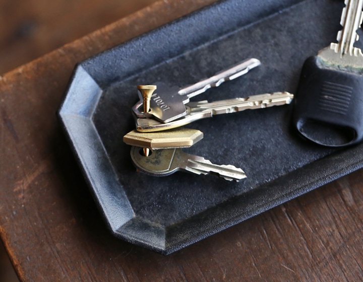 丈夫で使い勝手の良い鋳肌キーホルダーはプレゼントにもおすすめです。真鍮鋳肌、FUTAGAMIのものづくり