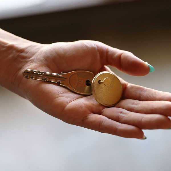 プレートの形は、丸・菱・六角の3種類。ネジ式になったバーをプレートから外すことで、鍵の差し入れがスムーズにできるキーホルダーです。
