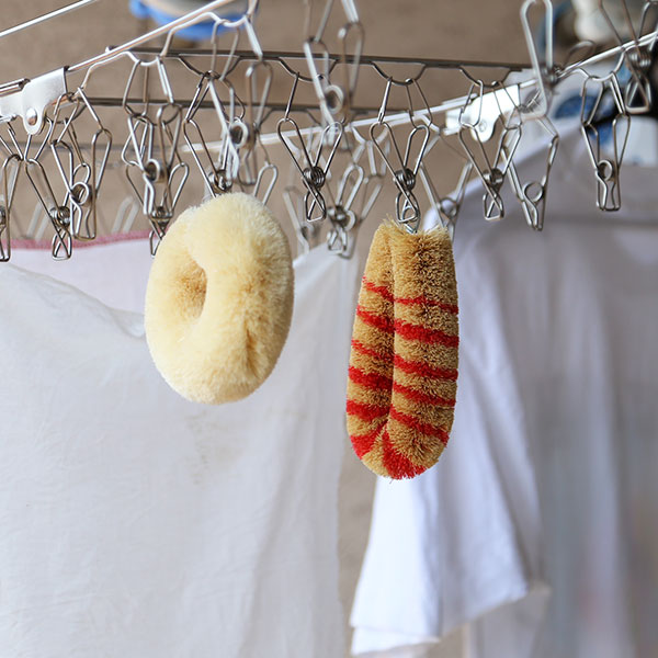 より清潔にお使いいただく場合、天日干しがおすすめ。乾燥と紫外線による殺菌効果がありますし、より長く束子をお使いいただけます。亀の子束子西尾商店 シマシマ ミニ