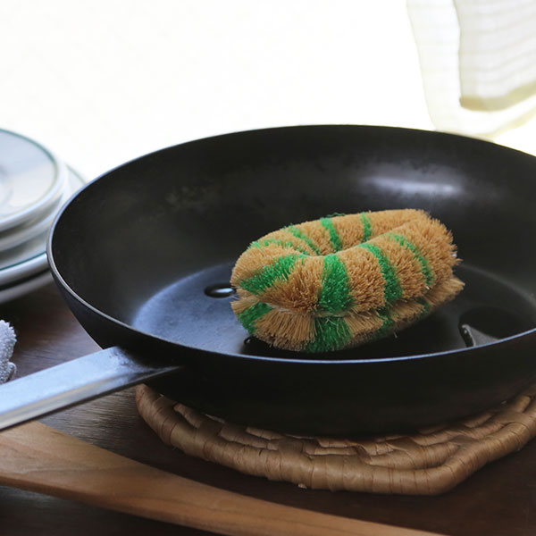 油がしみこみ育て上げた鉄フライパン・スキレットを洗う時に欠かせません。頑固な焦げあとや油汚れはお湯と束子で洗い落とせるから、しっかり洗ったなぁという達成感のある気持ちになります。