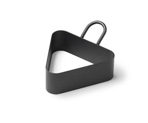 引っ掛けて収納できる取っ手付き。取っ手はフライパンカバーで蓋をしてもフライパンの中に納まる高さになっており、取り出しやすいよう斜め上を向いています。※取っ手は熱くなりますので、トングやミトンをご使用ください。