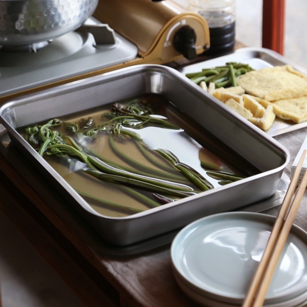 「ものづくりの街」新潟県燕市で1951年に創業した、調理器具メーカーの「仔犬印」こと本間製作所。自社での製品の企画にはじまり、金型から一貫して作ることができる工場を持ち、長きにわたり業務用の厨房製品を手掛けてきました。機能性、便利性はもちろんデザイン性にもこだわった、毎日使っても飽きのこない、永く使える調理器具。愛着を持って育てて欲しい、この想いをこめて仔犬印と名付けられました。フラットエッジ角バットシリーズ-