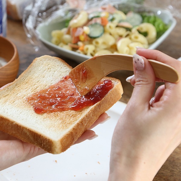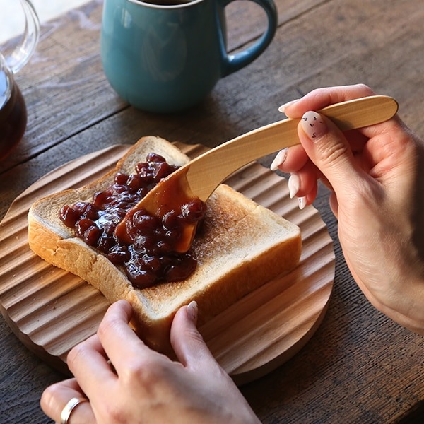 トーストにジャムを塗る時、ヘラ部分が内側に曲がっているので引っ掛かりなく塗ることができます。