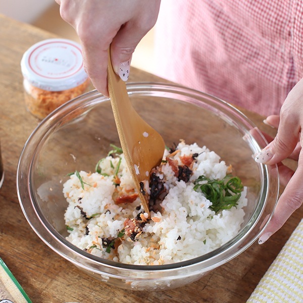しゃもじが少し角ばっていて、盛ったごはんを整えるのにちょうどいい角度になっています。
