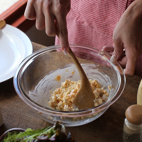 「minotake」は公長齋小菅と家具デザイナー小泉誠氏が共同制作したキッチンツールシリーズ。マカロニサラダや和え物、ちょっとした炒め物など混ぜることに向いています。