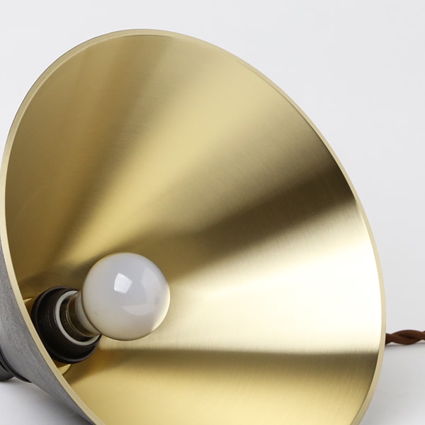 サイズ:約φ180×H140mm / 電球:白熱球E17型(消費電力60w)、LED電球:E17型(消費電力4.4w/明るさ40w相当) / 素材:真鍮 / 重量:(シェード+コード)約1.2kg / デザイナー:大治将典 / メーカー:FUTAGAMI(富山県高岡市) / パッケージ:紙箱