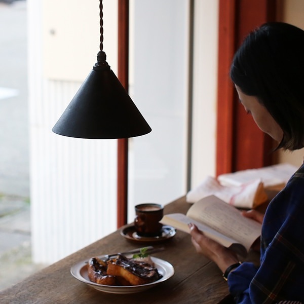 溶かした金属を砂で作った鋳型に流し込む製法でつくられた真鍮製のペンダントランプ。鋳物産業が盛んな富山県高岡市にて一つ一つ丁寧につくられています。