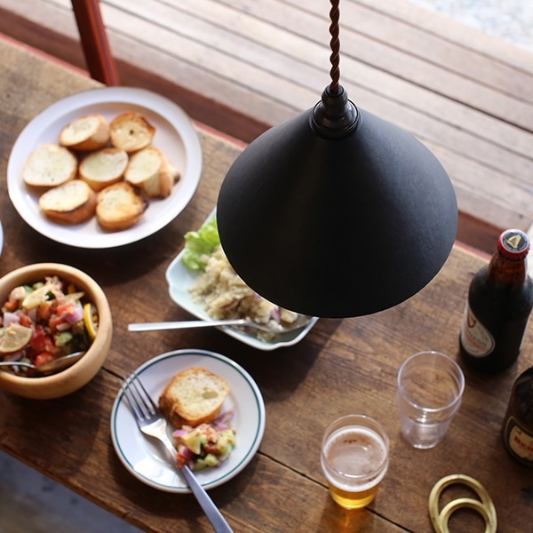 定番としてダイニングテーブルの上に設置するのが人気です。大きなテーブルの場合は並べて2灯つけても素敵に。高さを揃えてもきれいに見えますが、コード長を70cmと50cmに変えて変化を出すのも面白いと思います。