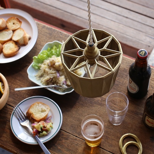 溶かした金属を砂で作った鋳型に流し込む製法でつくられた真鍮製のペンダントランプ。鋳物産業が盛んな富山県高岡市にて一つ一つ丁寧につくられています。