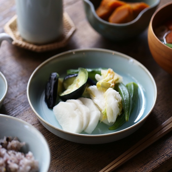 シンプルな形ながらも、使い込むほど手に馴染んでいく青白磁の平鉢。