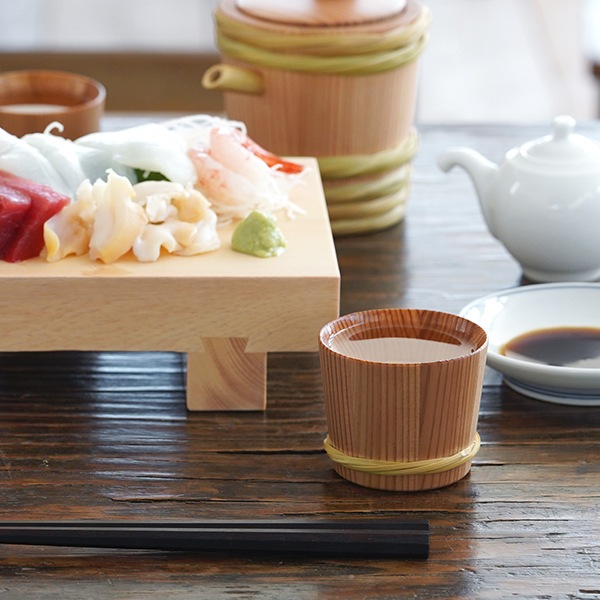 天然杉を使用し、桶作りの技法で組み上げられた風情漂うぐい吞み。