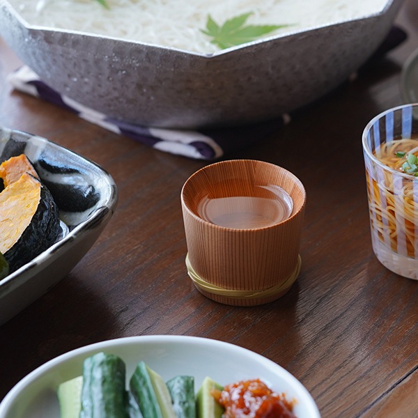 熱伝導率の低い木製の器は保温性にも優れているため、飲み物の温度を手に伝えず、結露もほとんどありません。注ぎたての温度を長時間持続するため、冷酒はひんやり冷たく、熱燗は程よい温かさのまま、ゆっくりとお酒を嗜むことができます。
