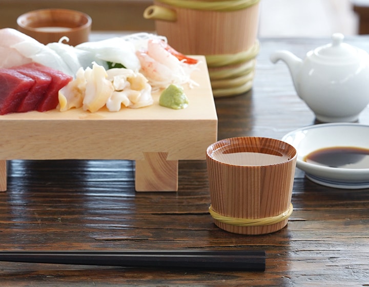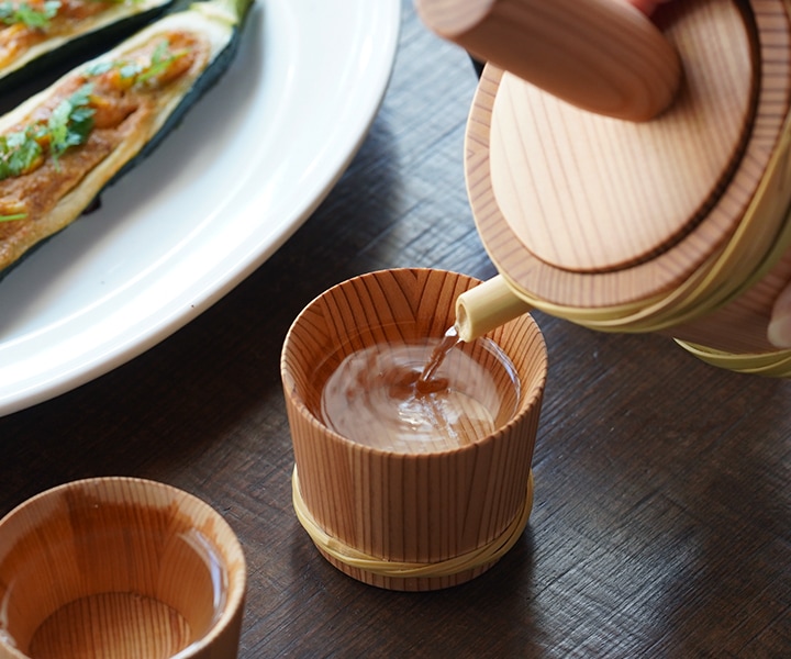 熱伝導率の低い木製の器は保温性にも優れているため、飲み物の温度を手に伝えず、結露もほとんどありません。注ぎたての温度を長時間持続するため、冷酒はひんやり冷たく、熱燗は程よい温かさのまま、ゆっくりとお酒を嗜むことができます。