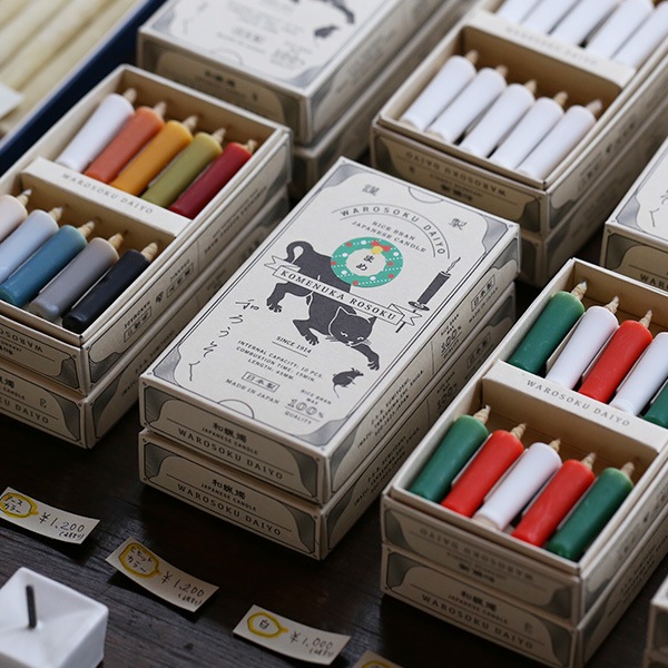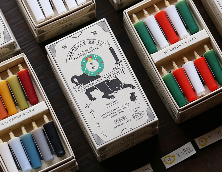 遊び心溢れるパッケージには、和ろうそく屋さんの豆知識とおもしろい物語が詰まっているのです。大與 米ぬかろうそく まめ