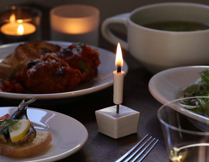 お部屋の照明を少し落としてろうそくを並べれば、雰囲気が一段と上がります。炎の赤みがかった光があたりをちらちらと照らします。