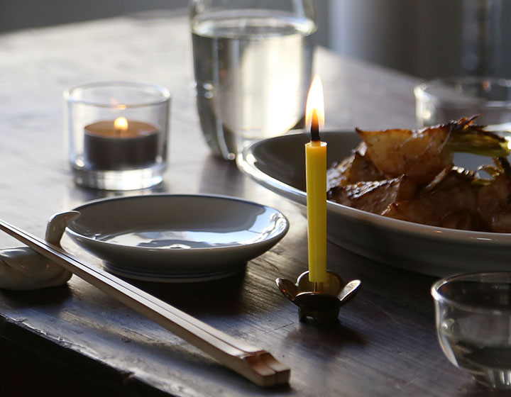 煙が少ないということはにおいもほとんど無いため、リラックスしたい時やお食事の場面で和ろうそくを灯すのも雰囲気があって良いですね。芯のはなし