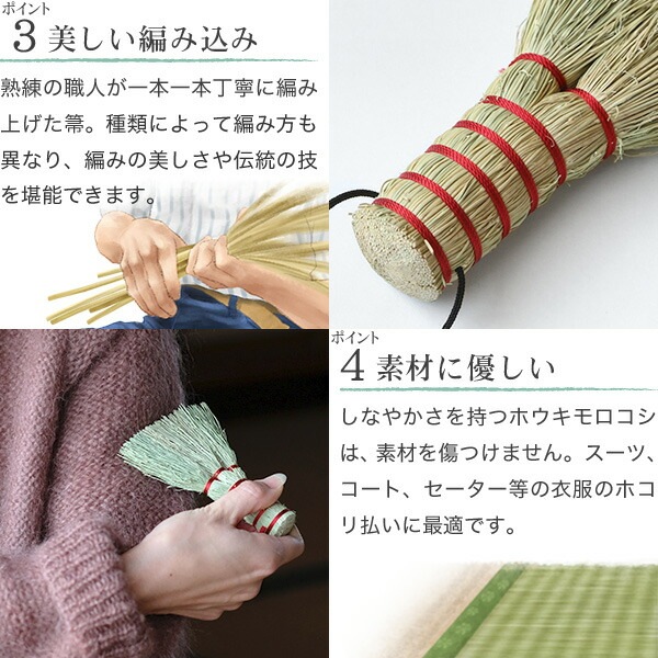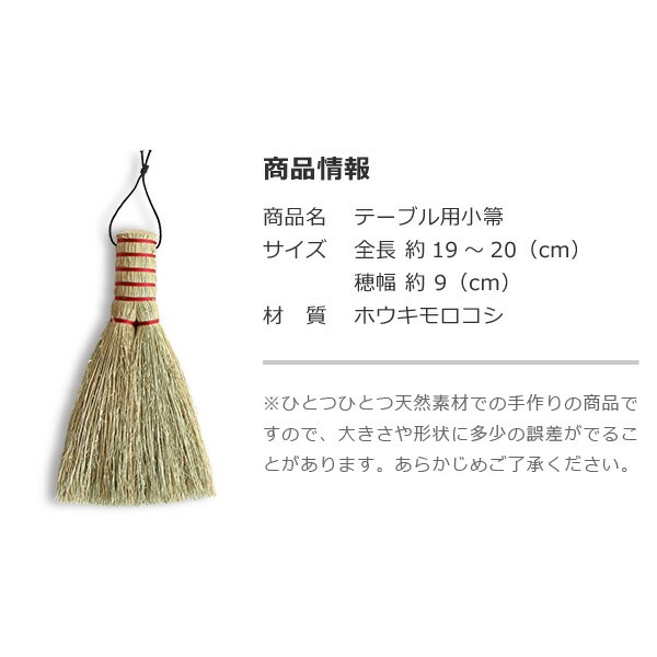 サイズ:全長約19~20、穂幅約9(cm) / 素材:ホウキモロコシ(穂)、竹(柄) / メーカー:白木屋中村傳兵衛商店