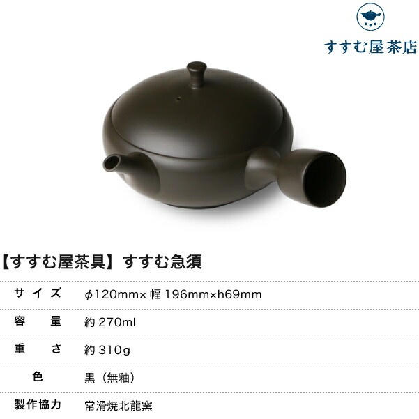 サイズ:φ120mm×幅196mm×h69mm / 容量:約270ml / 重量:約310g / 色:黒(無釉) / 製作協力常滑焼北龍窯 / 化粧箱入