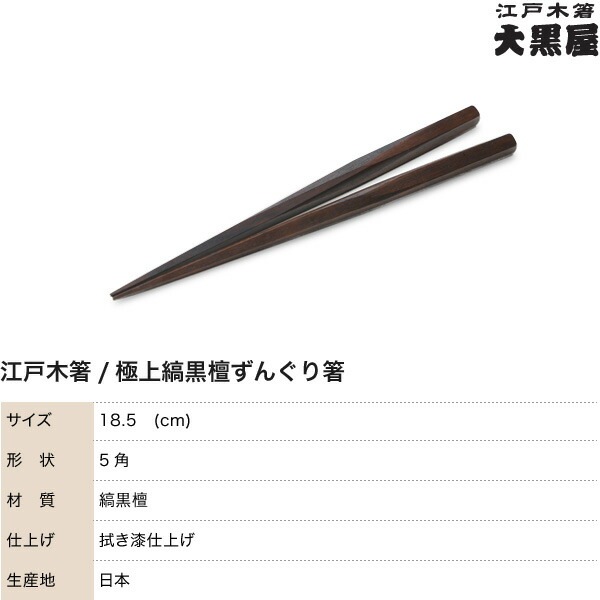 江戸木箸 漆塗極上縞黒檀 ずんぐり箸 大黒屋