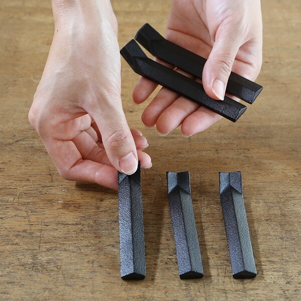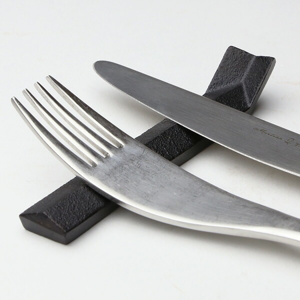 - 鉄で出来た箸置きのご紹介です。製作は山形の鋳心ノ工房によるもので「日本に伝わる鋳物の伝統美を、今日の生活様式に」を元に製作されています。古くから伝わる山形鋳物の技術を用い、現代の生活スタイルによく似合うものを作り出しているこの工房は、日本を始め世界各地の美術館や博物館でも展示会を催しています。持った時のほどよい重みと鋳物の肌が伝統職人の手仕事を感じさせてくれます。着色は本漆なので高級感もあり、又、5個セットなので贈り物などにも最適ですよ。