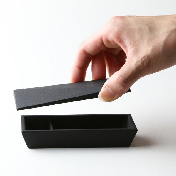 - 大事な物をしまっておく小箱のように見えて実はこれ、お香立てなんです。蓋を開ければお香立てのスペースとお香を収納できるスペースがあるのでとっても使い勝手がいいんですよ。製作は山形の鋳心ノ工房によるもので「日本に伝わる鋳物の伝統美を、今日の生活様式に」を元に製作されています。古くから伝わる山形鋳物の技術を用い、現代の生活スタイルによく似合うものを作り出しているこの工房は、日本を始め世界各地の美術館や博物館でも展示会を催しています。持った時のほどよい重みと鋳物の肌が伝統職人の手仕事を感じさせてくれます。インテリアにも素敵で、使い勝手の良いお香立ていかがですか。