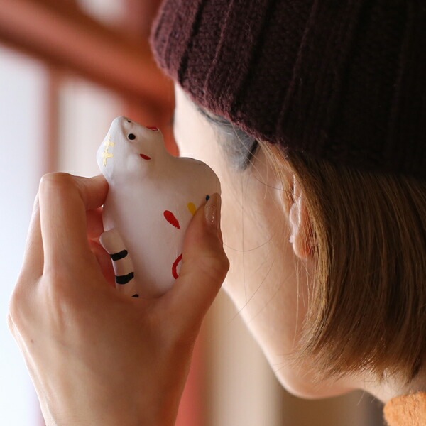 干支シリーズの寅は人形の中に玉を入れた土鈴で、振るとカランコロンと優しい音色をが聞こえてきます。張り子の寅がモデルで、大きく開けた口からたくさんの福を呼び込んでくれそうです。素朴で愛らしいトラの土鈴