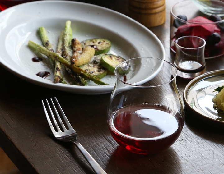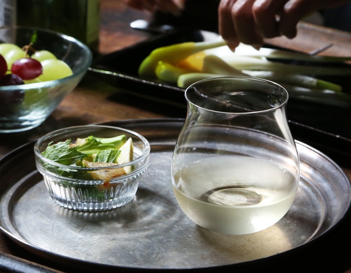気軽にワインを楽しめる、ステムのないワイングラス「うすはりブルゴーニュ」。 飲み口だけではなく底面まで全て均一な薄いガラスで作られており、無駄のないシンプルで上品なグラスは透明度も高く、注いだワインを美しく見せてくれます。