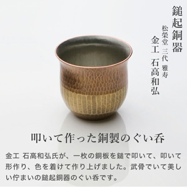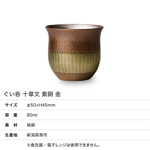 鎚起銅器 ぐい呑 十草文 素銅(金) Cu-G-4