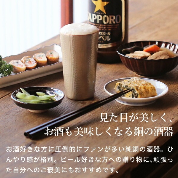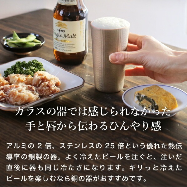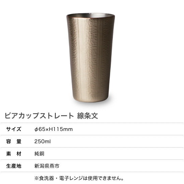 鎚起銅器 ビアカップ ストレート 線条文 Cu-S-4