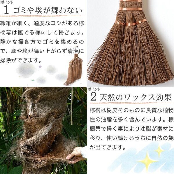 山本勝之助商店 棕櫚箒(しゅろほうき) 3玉荒神箒(ダルマ中 柄なし 鬼毛)