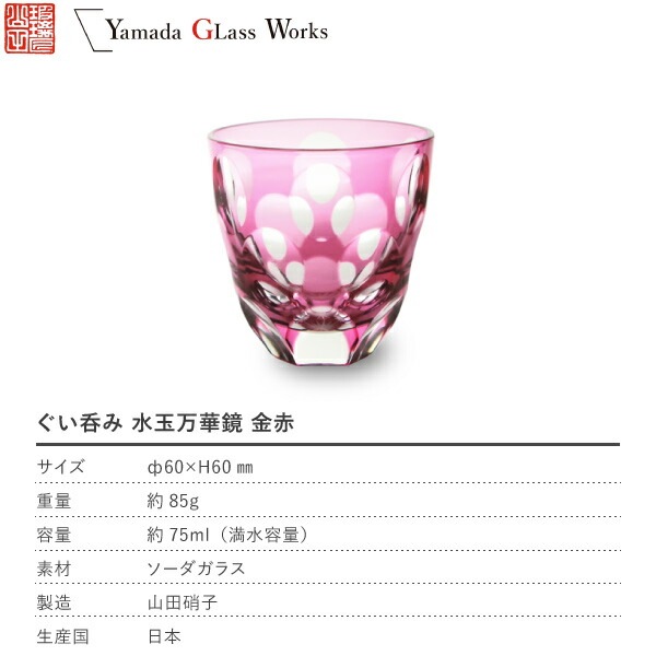 山田硝子 ぐい呑み 水玉万華鏡 金赤 江戸切子