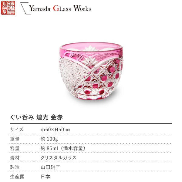 山田硝子 ぐい呑み 煌光 金赤 江戸切子