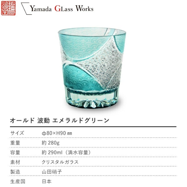山田硝子 オールド 波動 エメラルドグリーン 江戸切子