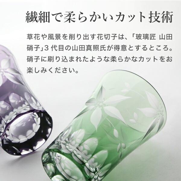 山田硝子 タンブラー 鉄線 モスグリーン 江戸切子