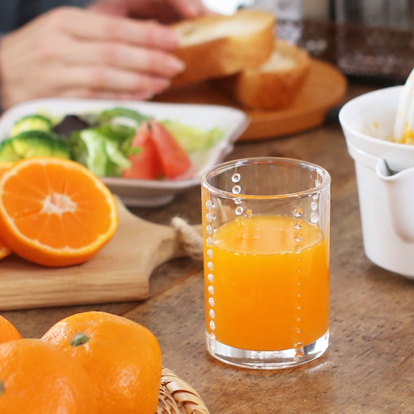 絞りたてのフレッシュな生ジュースもちょうど良いグラスです。