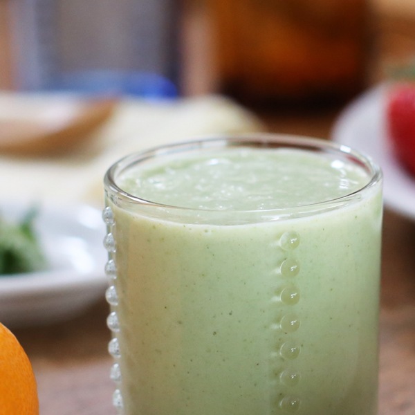 市販のジュースではなく、ぜひジューサーで皮ごと絞った果肉たっぷりのオレンジジュースがおすすめ。果肉も一緒にひと口ずつ味わいながらいただくと、果物の美味しさを堪能できます。