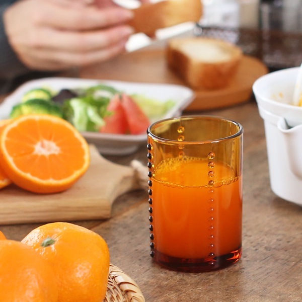 滑り止めの役割の粒々は、デザインのアクセントにもなっていて、使いやすくて美しいグラスです。