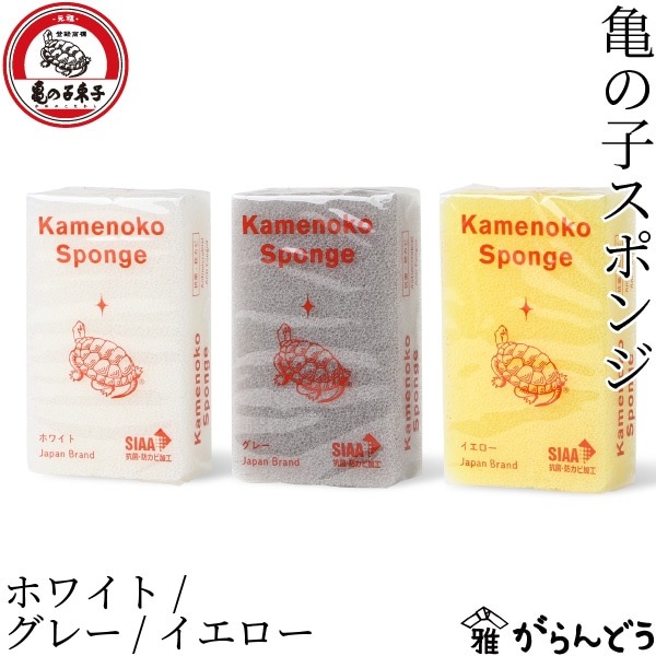【グレー、イエロー、ホワイト】 束子の元祖である亀の子束子から名前を受け継いで、新しいスポンジのスタンダードとなるべく生まれた「亀の子スポンジ」。
