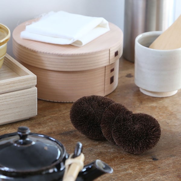 棕櫚の束子は木製のまな板洗いに最適。目の詰まった繊維と適度なコシは、料理人が愛用するほどです。