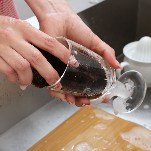 パームよりも柔らかな繊維を持つ棕櫚は削り落とす力はパームに劣りますが、細くしなやかな繊維で汚れを掻き出し、洗うものを傷つけません。