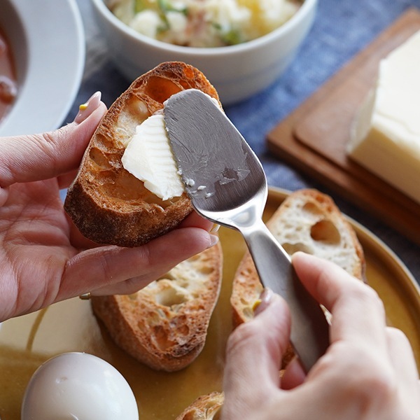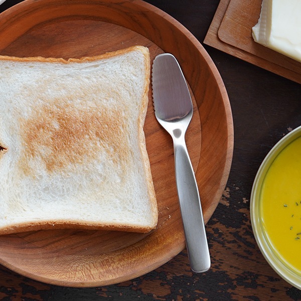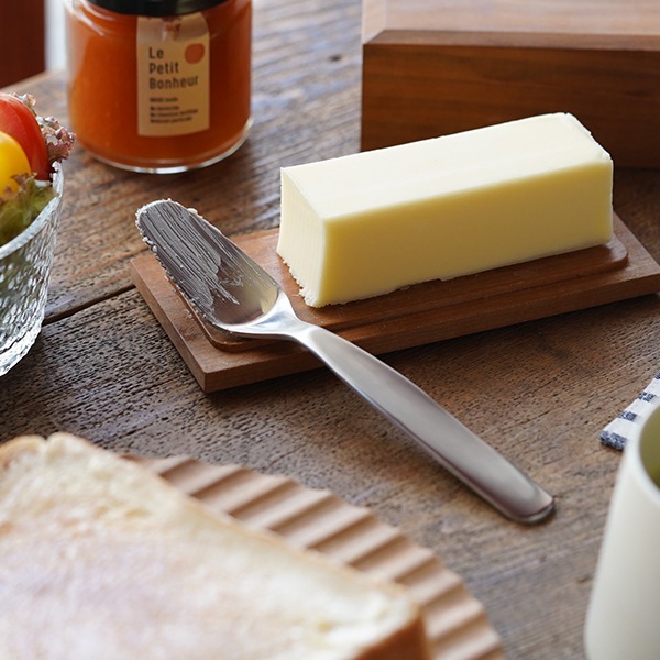 フラットな先端に、片側に波刃を施しバターを削りやすく塗り広げやすい形状です。