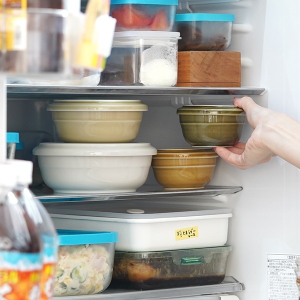 「家族の食事の時間がずれてしまう」「多めに作ってまた明日のおかずに」など、保存容器が欲しいシーンはいろいろあります。そんな時に味気なくならず、食器としても保存容器としても気兼ねなく使えるデザインです。