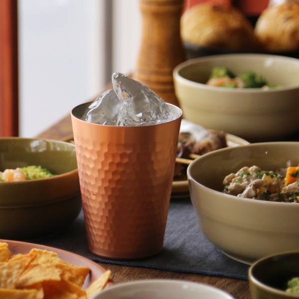 冷たい飲み物をより冷たく、美味しく、楽しむための銅製のタンブラー。